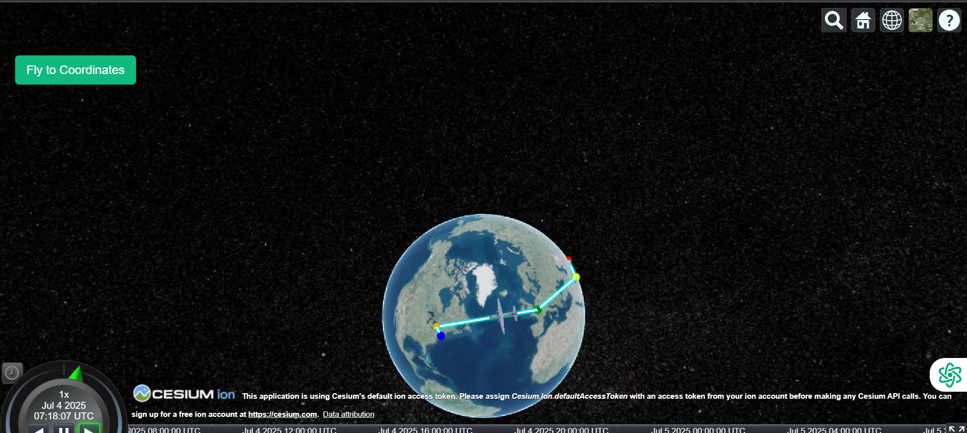 Interactive 3D flight path visualization tool using CesiumJS for geospatial data representation.